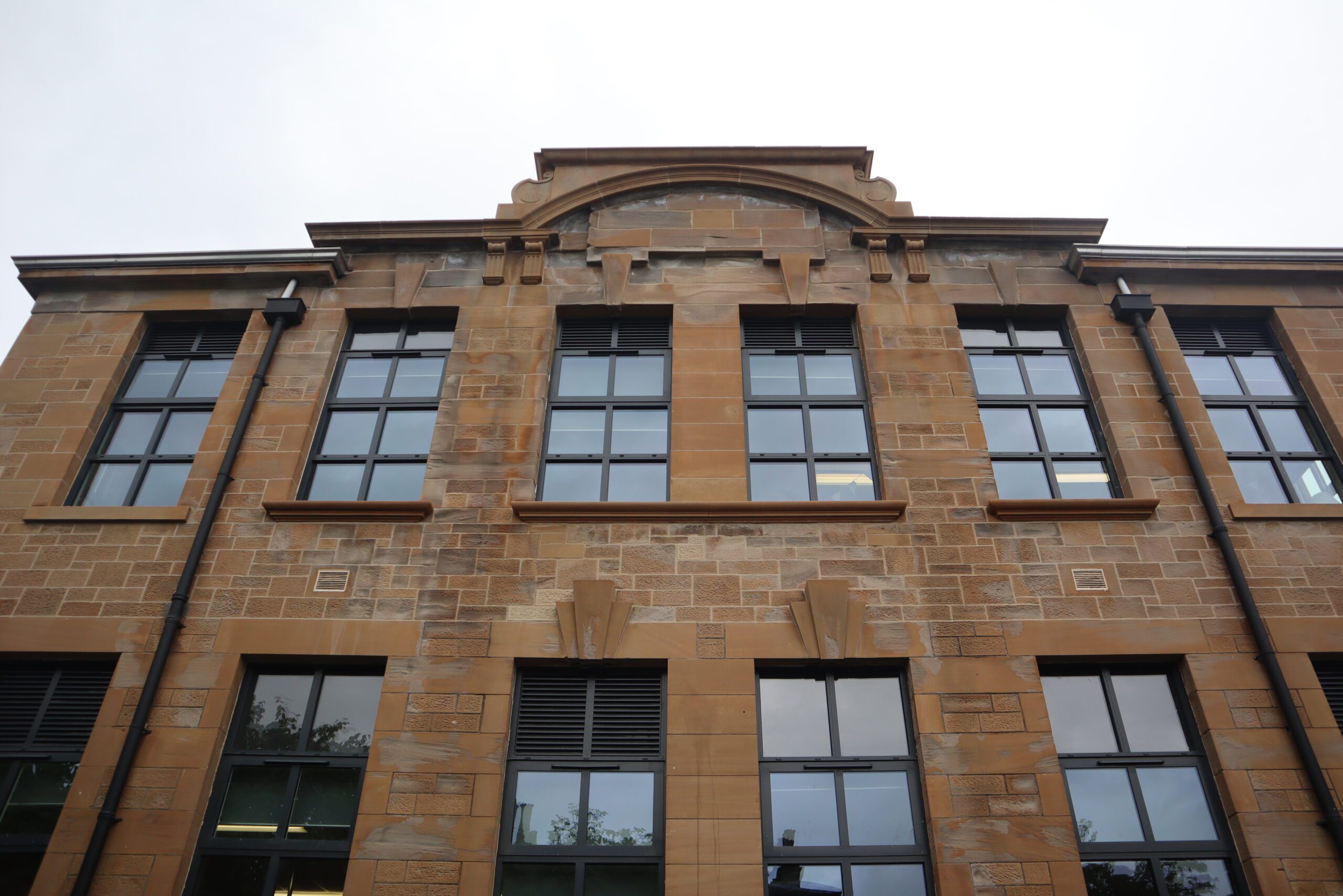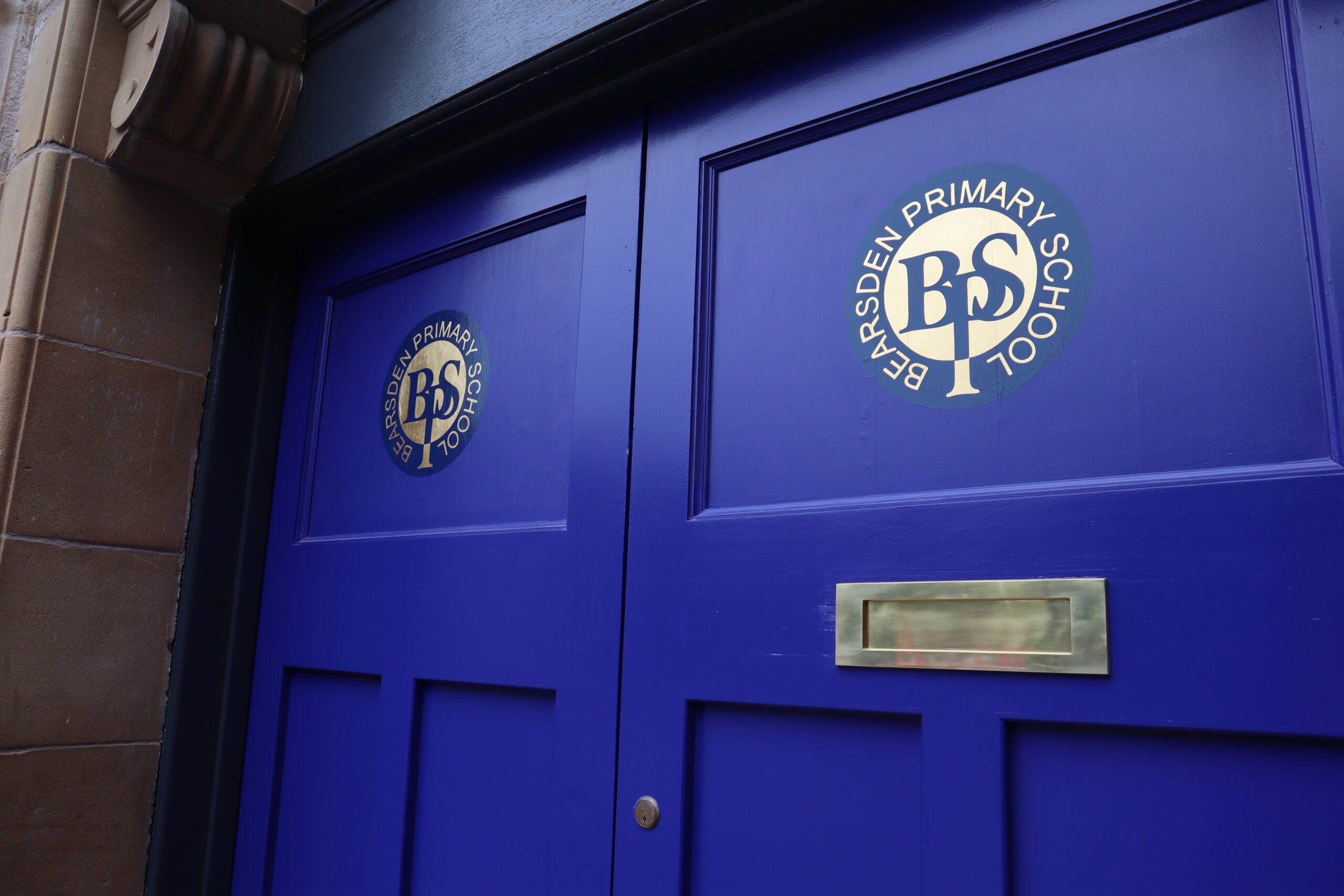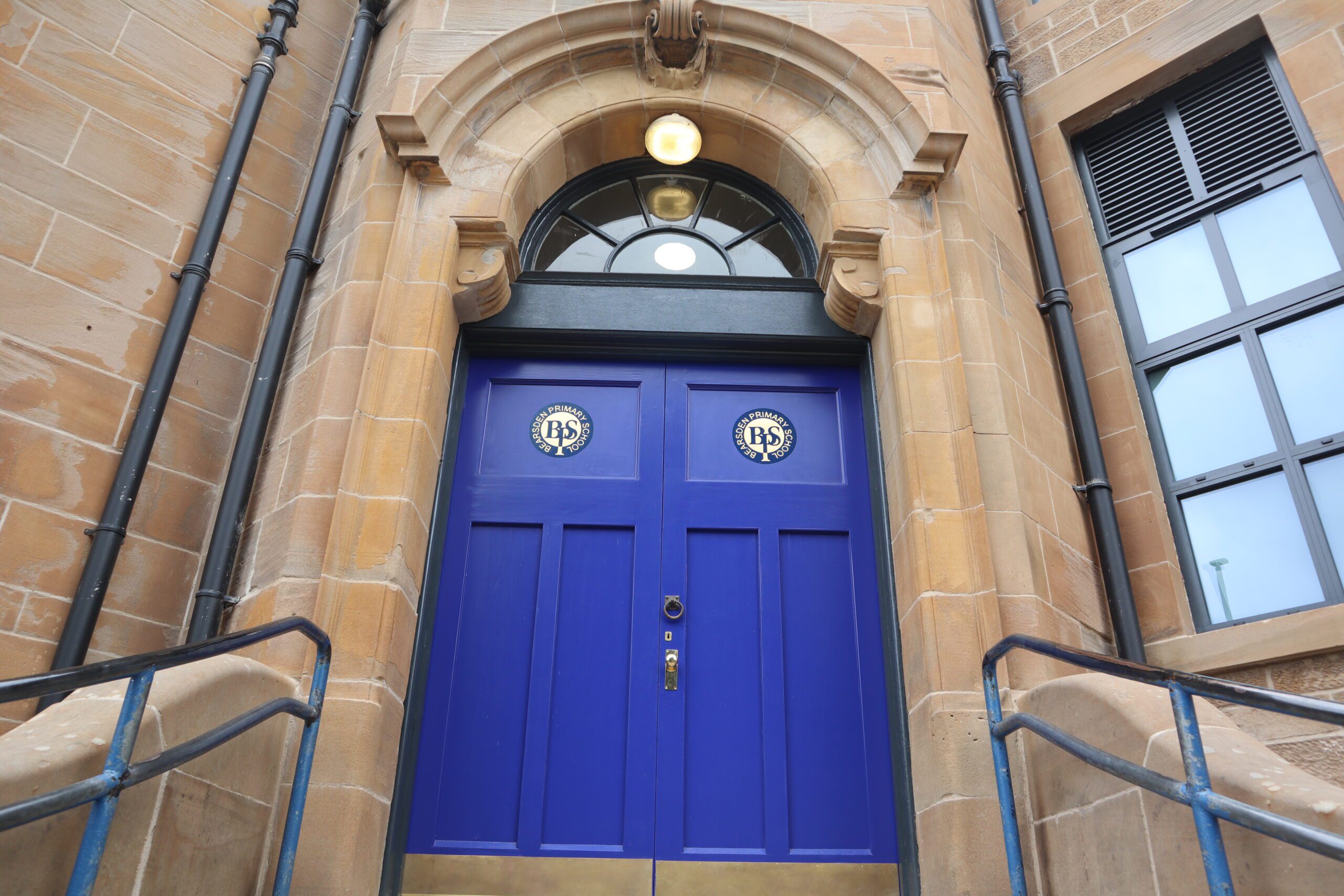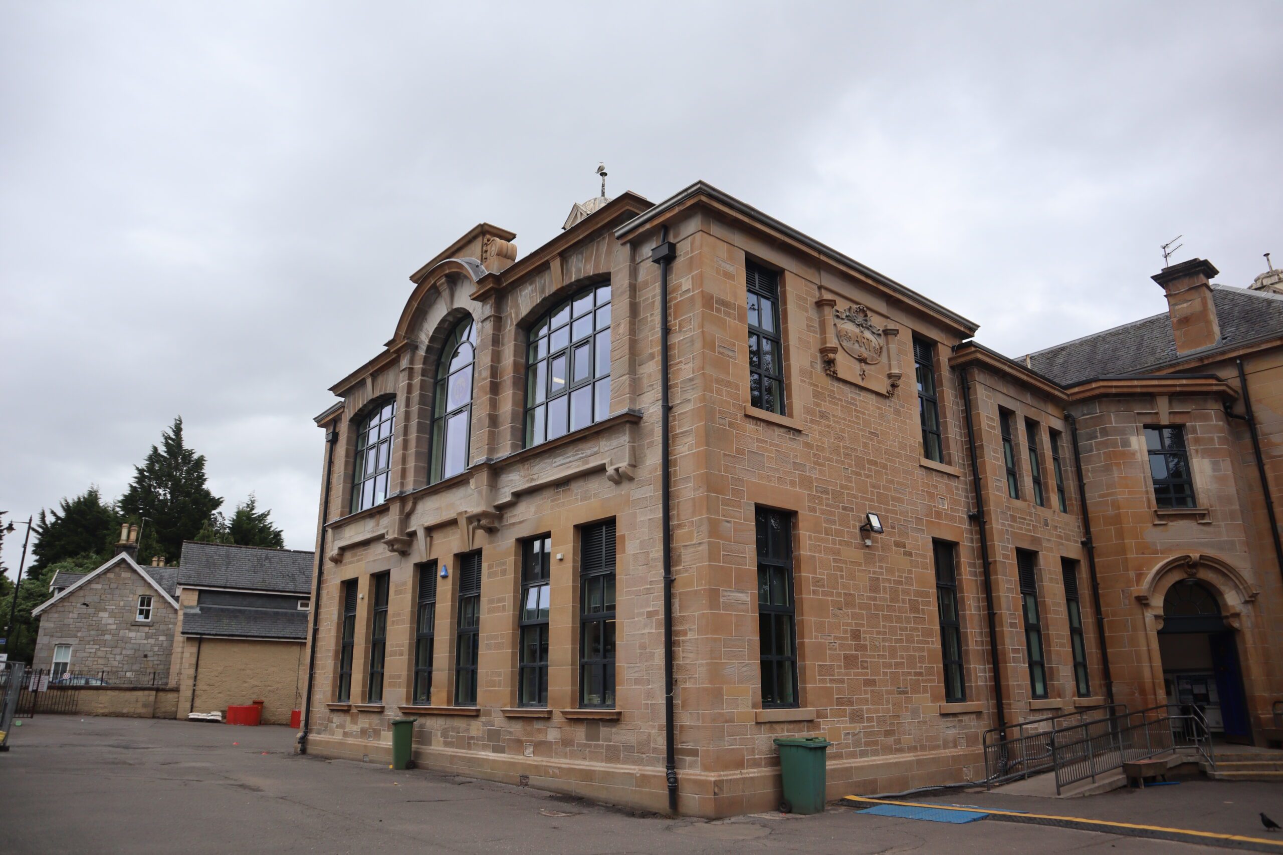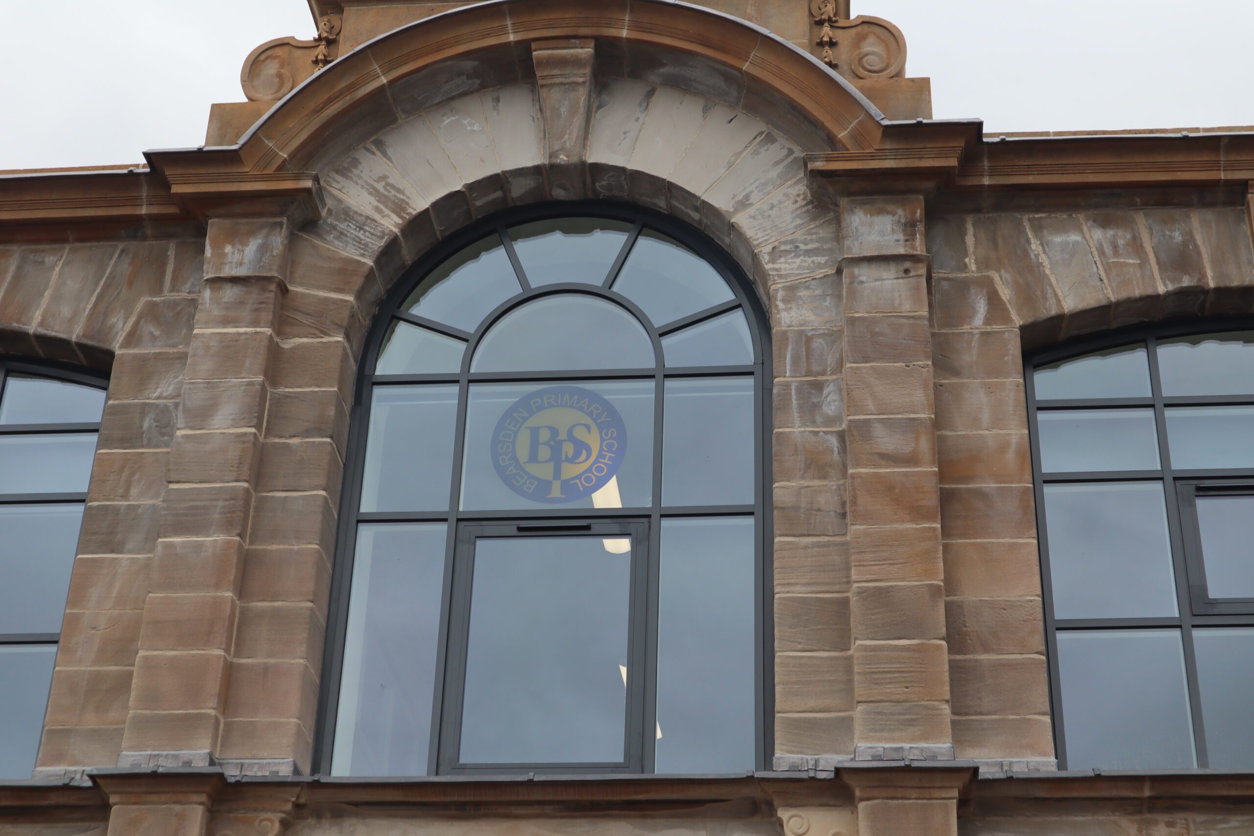 External restoration works revealed original lettering on the west elevation of the building which refers to the school’s previous name ‘Bearsden Academy’ and on the advice of Historic Environment Scotland, the original lettering was restored. A feature window displaying the school’s “BPS” logo was also installed at the front of the school. The original sign was framed and presented back to the school.