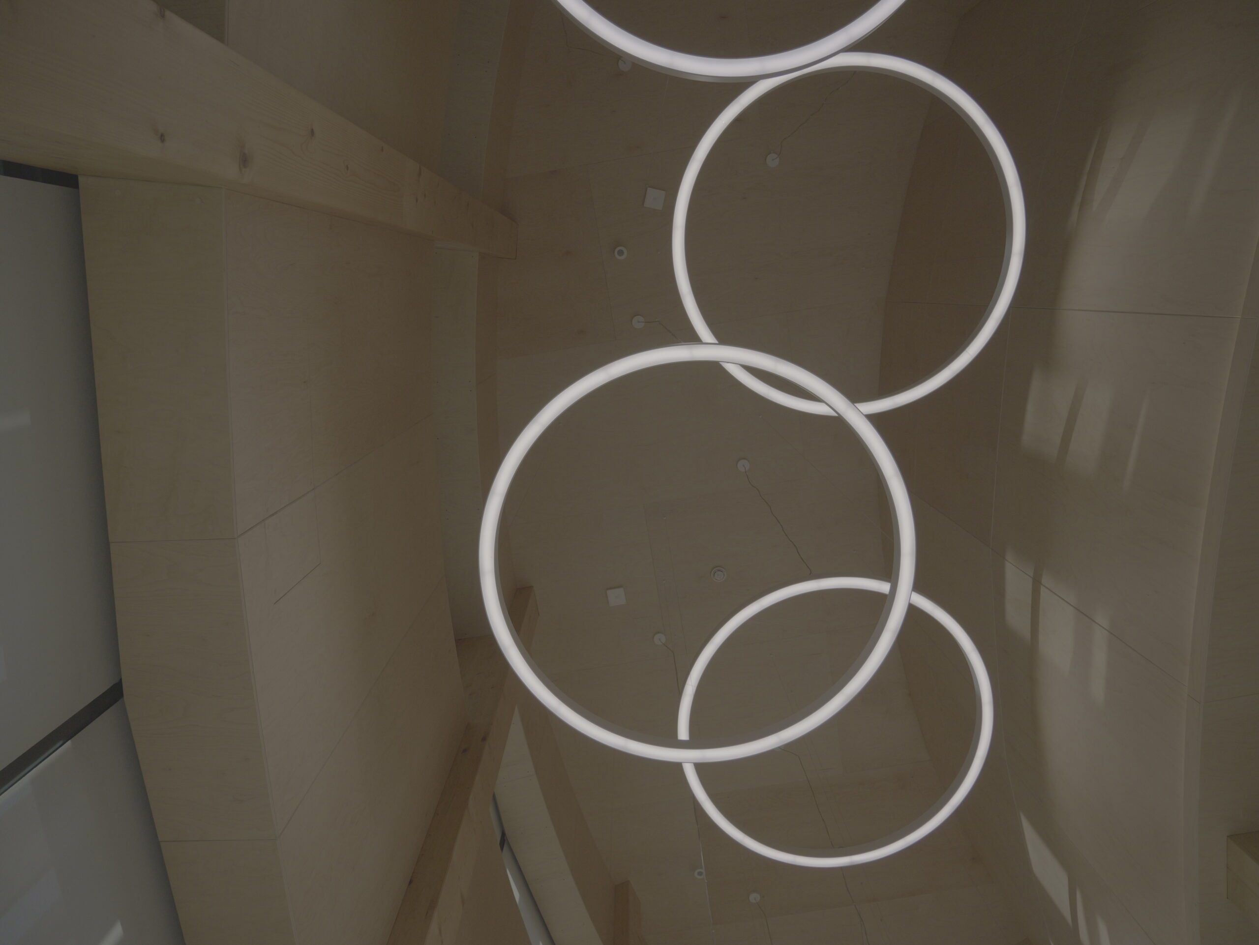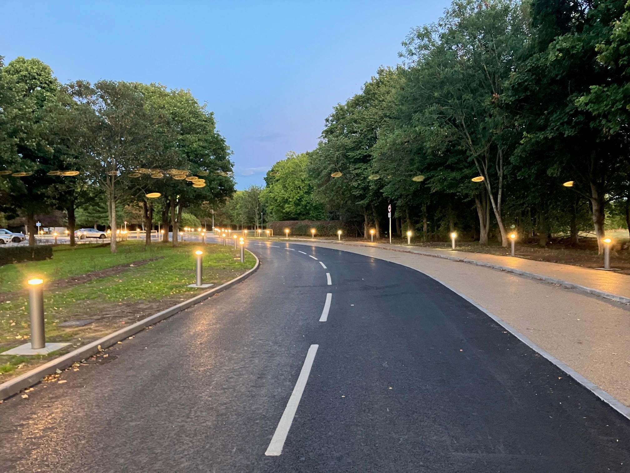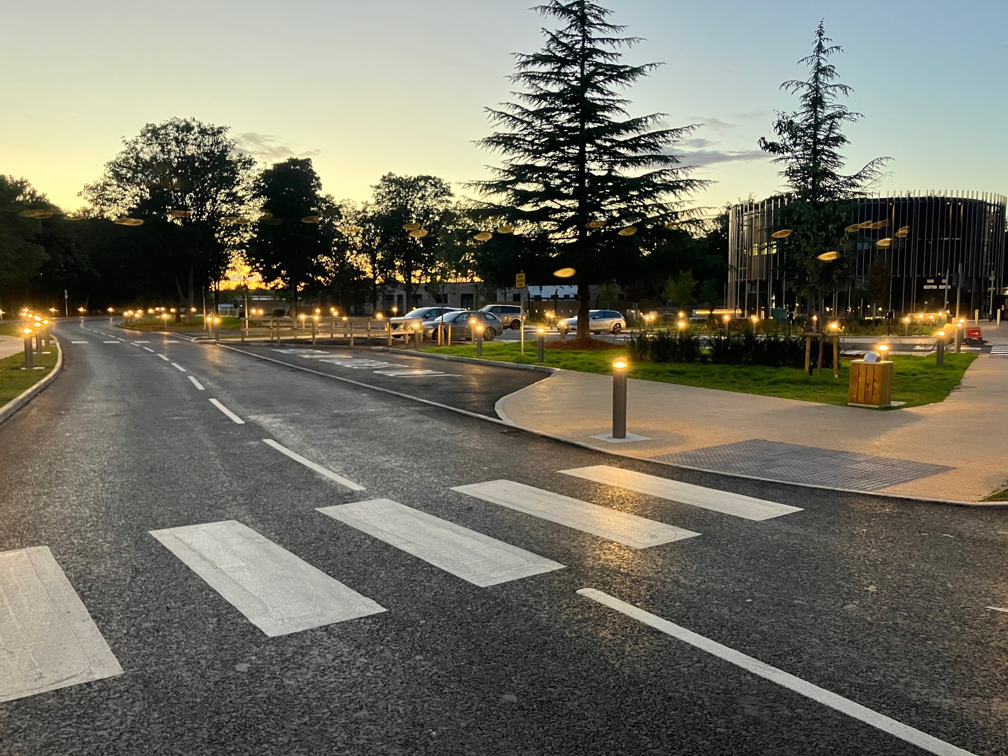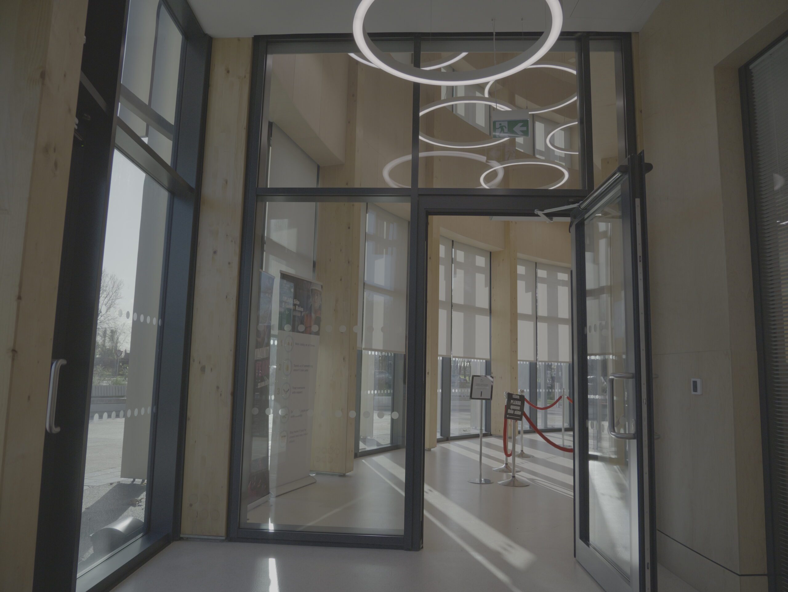In phase one of the project, McLaughlin & Harvey delivered a new welcome centre for the campus. The two-storey, circular building constructed from CLT beams and faceted glass curtain façade will house the campuses security control centre and offices as well as event and exhibition spaces. In the surrounding grounds, we installed security fencing and external lighting, a new entrance road, hard and soft landscaping, and resin surfaces.