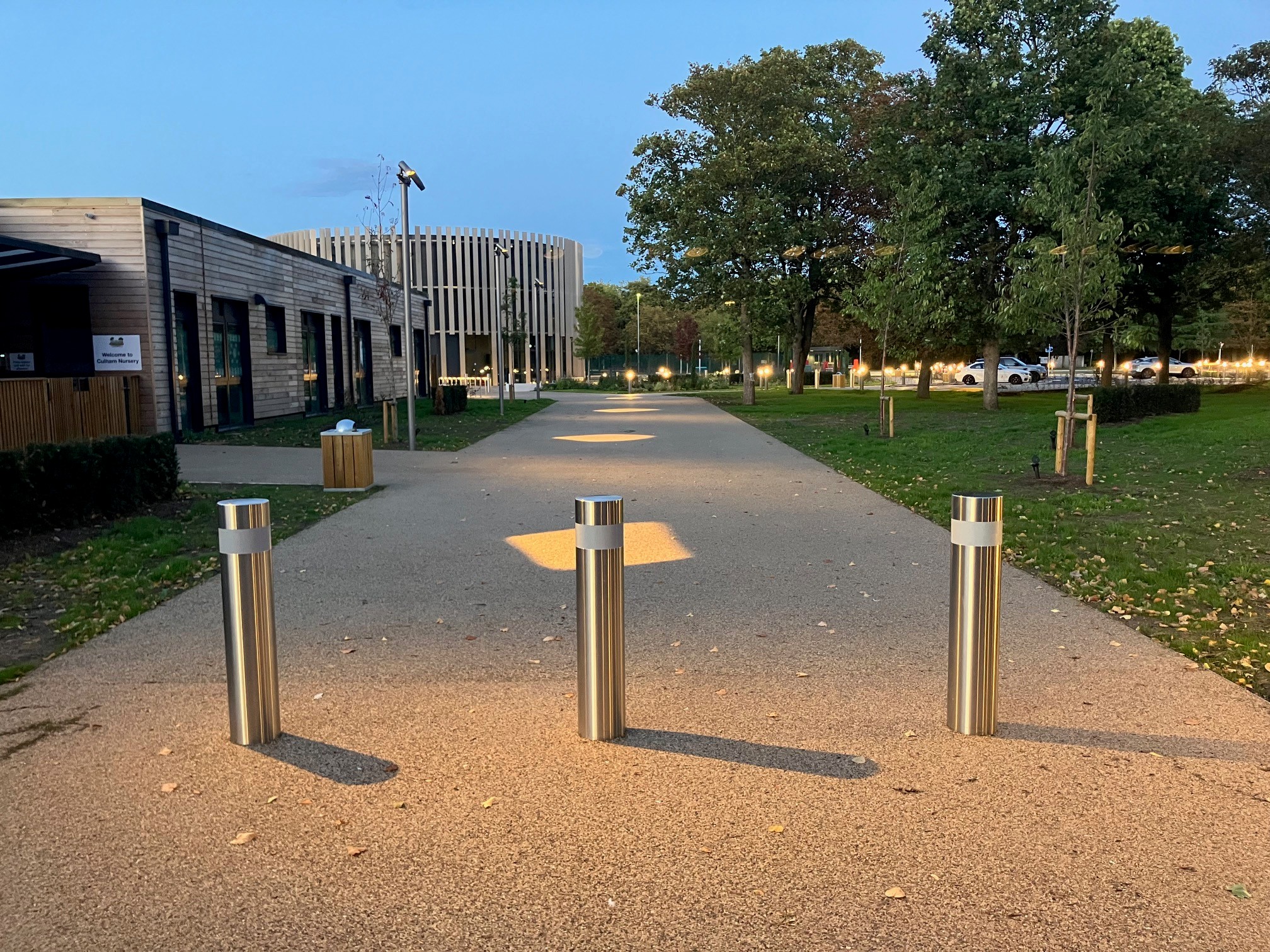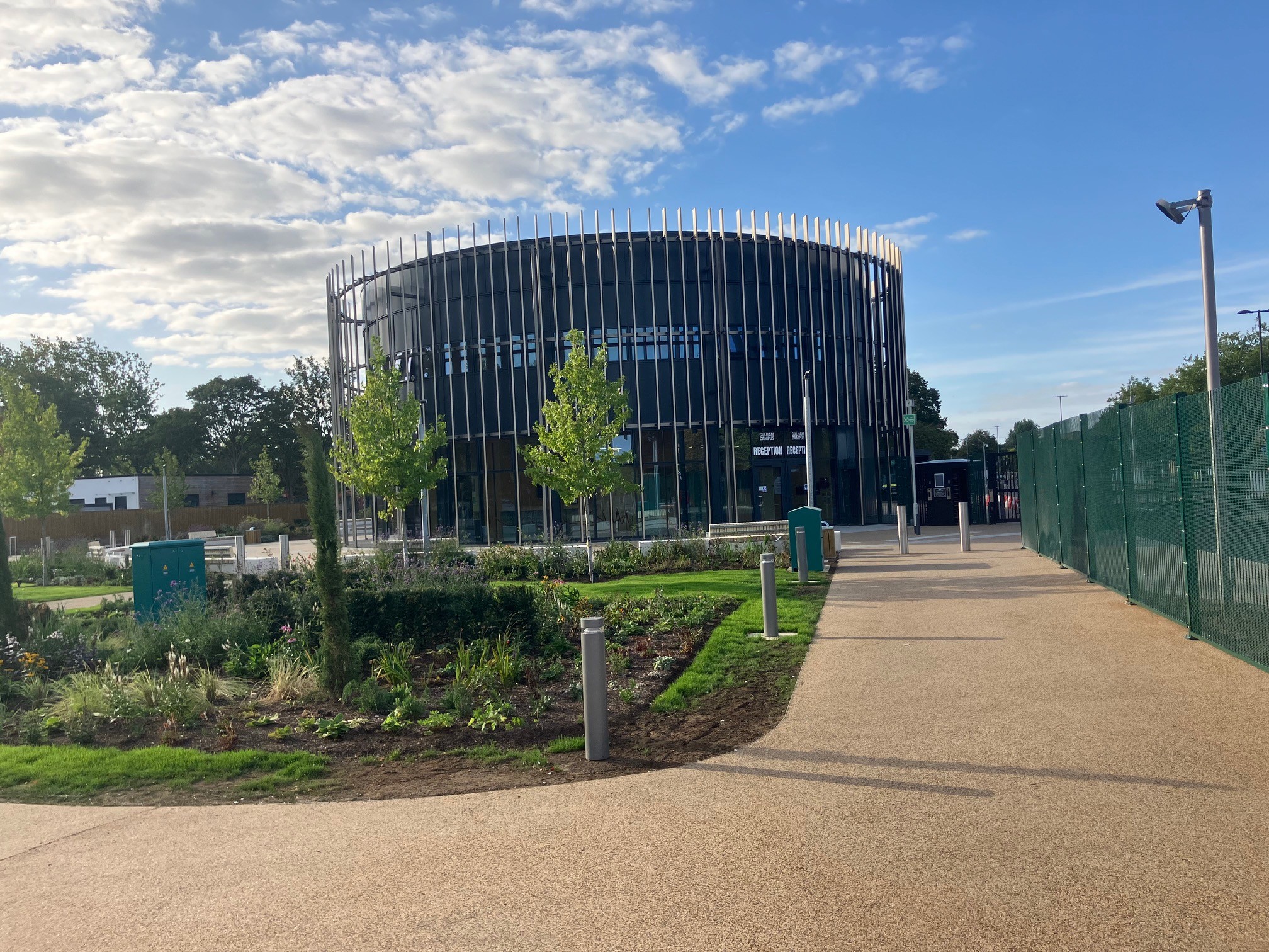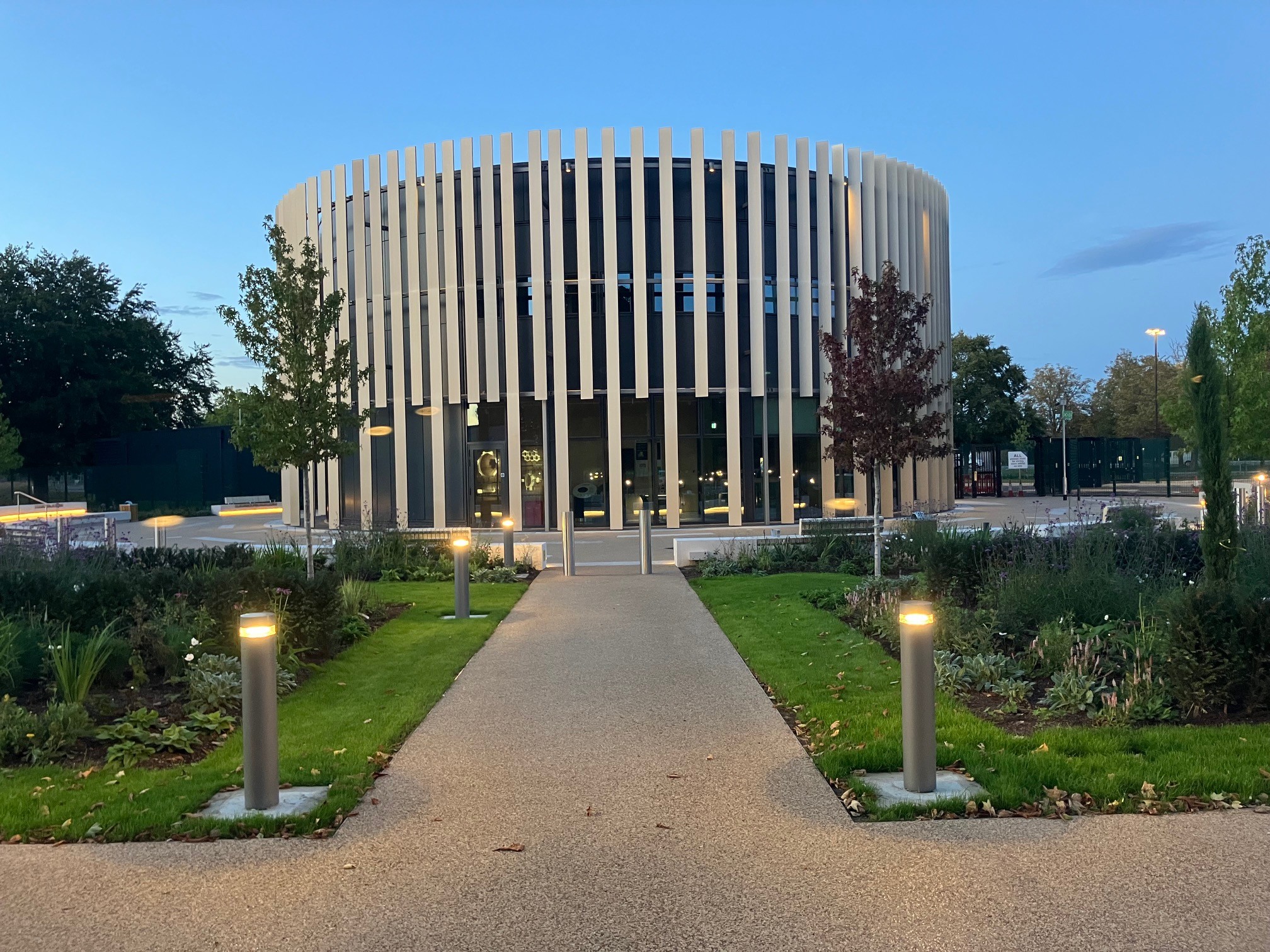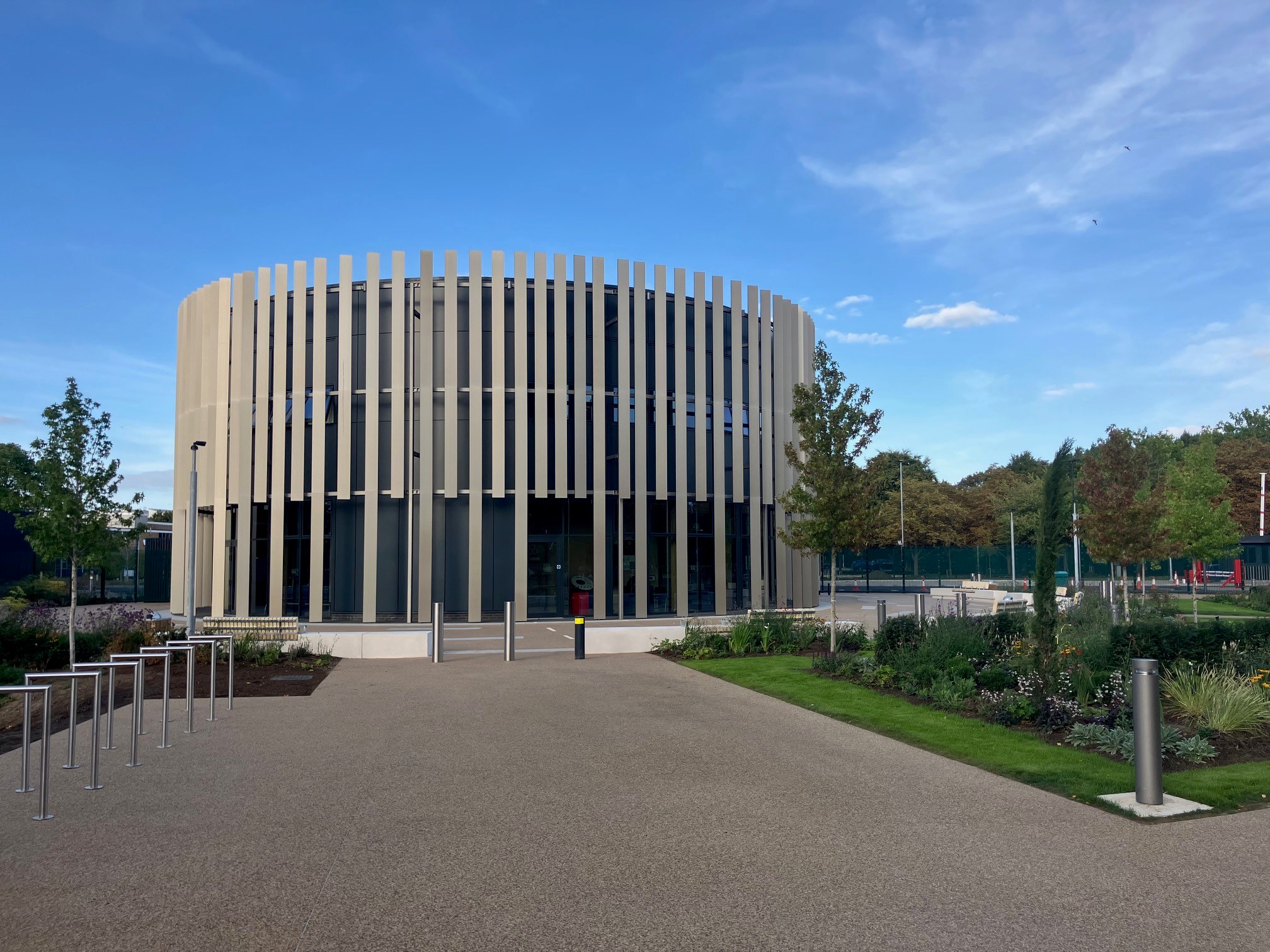In phase two, security was further enhanced with additional barriers, bi-fold gates, and lighting, as well as the removal of legacy buildings. Development of external spaces allowed for the introduction of additional staff parking spaces, landscaping, and outdoor furniture.